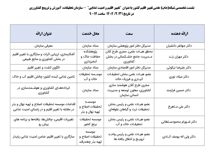 - اقدامات موسسه تحقیقات اصلاح و تهیه نهال و بذر در مقابله با تغییر اقلیم